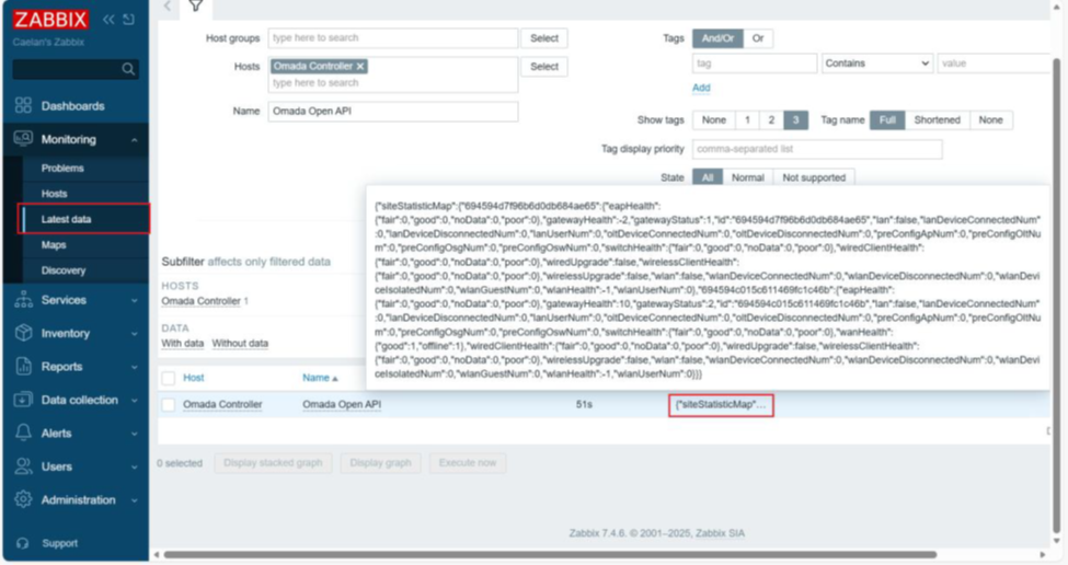 3.2 Visualizando os dados JSON obtidos no Zabbix