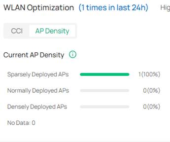 The statistical data on wireless optimization can be viewed on the Dashboard>WiFi page, including CCI and AP Density.