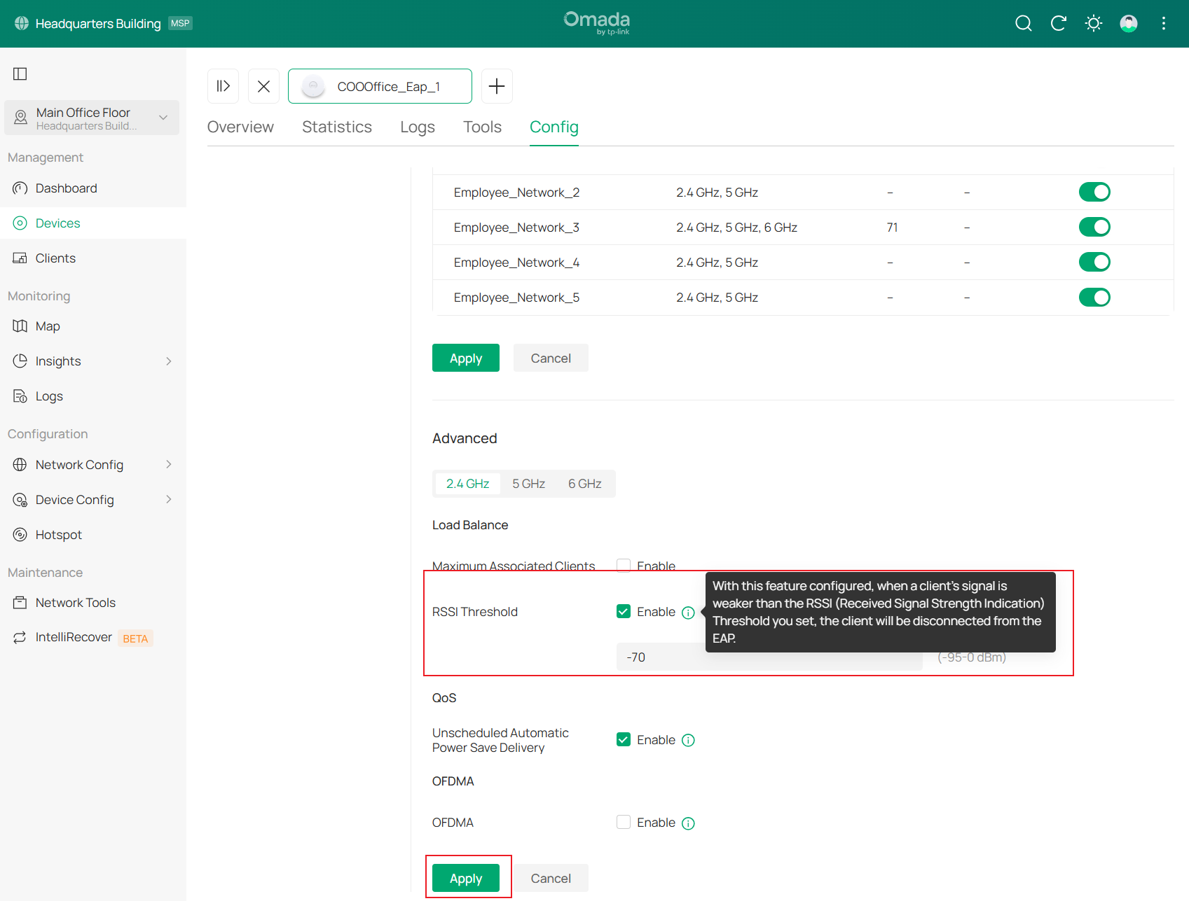 - Quality of Service: By setting a minimum RSSI, you can ensure that devices on the network receive a certain level of service. This is particularly important for applications that require a stable and strong signal, such as video streaming, online gaming, or voice over IP.