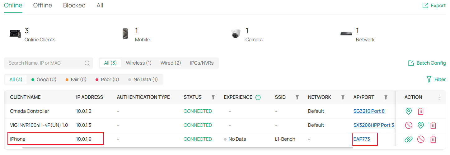 - Go to Clients > Online page: This page shows all currently connected clients.