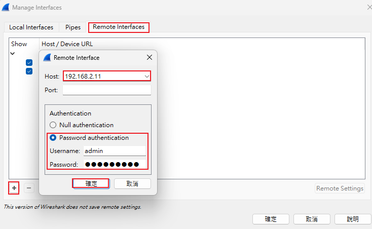 步驟 9. 彈出 Manage Interfaces 介面, 至 Remote Interfaces,點擊 ‘+’ 新增 remote interface