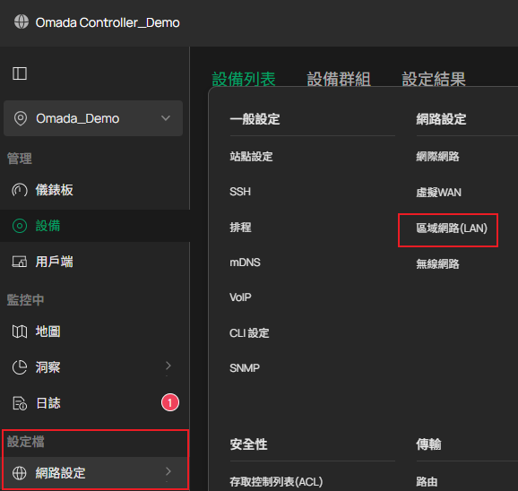 步驟 1. 設定檔 > 網路設定 > 區域網路(LAN)