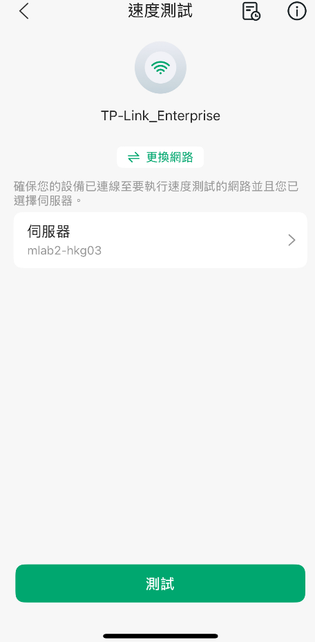 步驟 2. 如要變更測試的網路,點擊 ‘Change Network’,再接著點 Test 開始測試