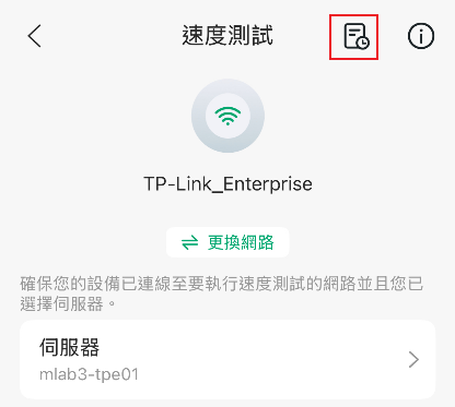 步驟 5. 如要查看過去的 Ping 測試結果,可以點擊 Ping 測試頁面右上角的圖示。