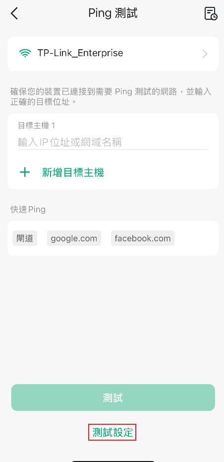 步驟 3. 點擊「測試設定」以自訂 Ping 測試。