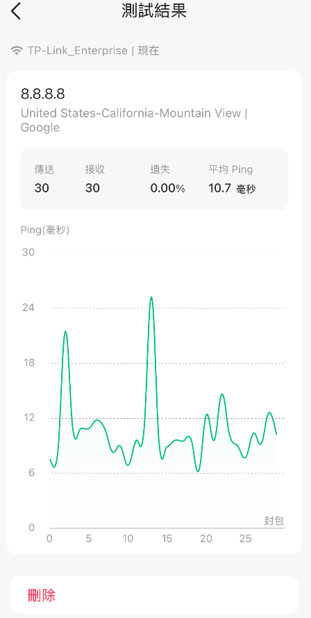 Ping 測試 (Ping Test):透過 IP 或網域名稱允許網路管理者偵測主機在本地或網際網路上的存取情形,直接用手機檢查與任何節點的連線狀態。