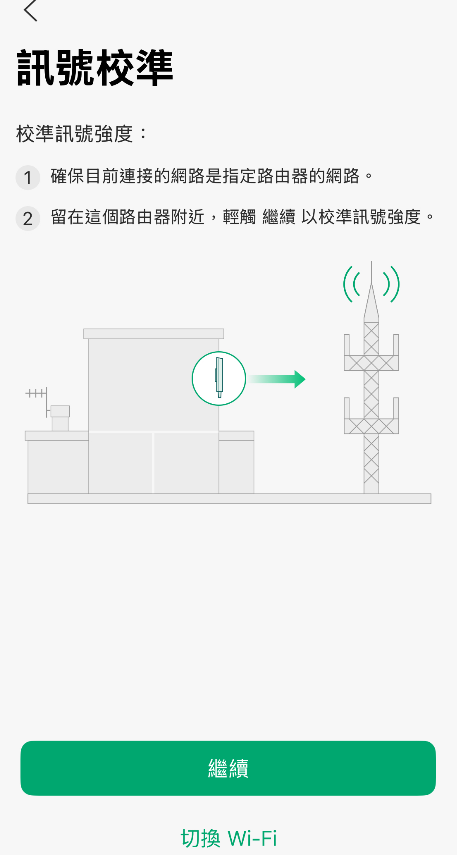 步驟 2. 點選「繼續」以開始訊號校準,或點選「切換 Wi-Fi」以更換網路。