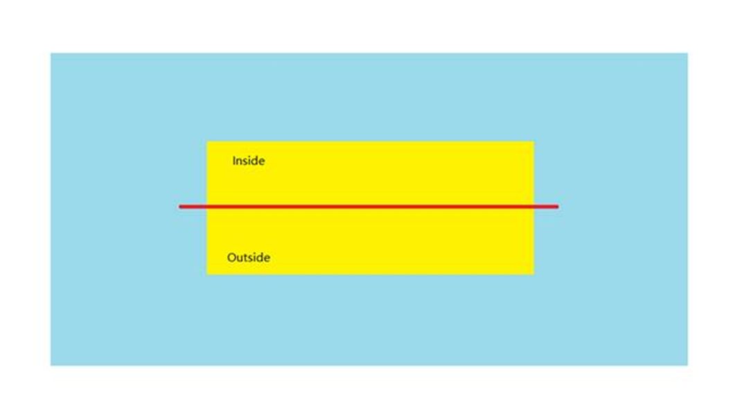 系統不在乎目標在綠色或無色區域內做什麼。它只考慮綠色區域的進入和離開點,並判斷這些點是位於綠色區域的內部還是外部。