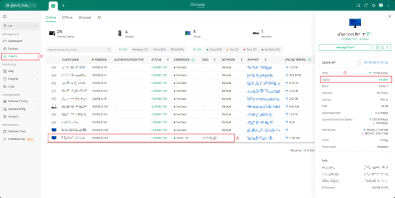 - Với kết nối không dây, đảm bảo kết nối đúng SSID và cường độ tín hiệu đạt -60 dBm trở lên.