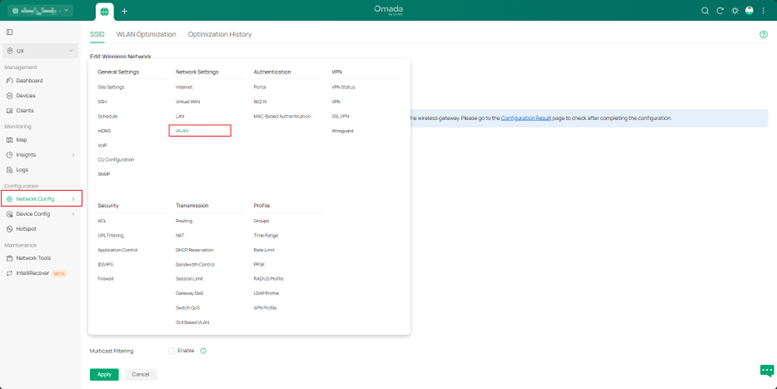 Trong Omada Controller, hãy bật Multicast-to-Unicast Conversion (Site > Network Config > WLAN > [SSID] > Edit > Multicast/Broadcast Management) để cải thiện độ ổn định của việc truyền dữ liệu qua Wi-Fi.