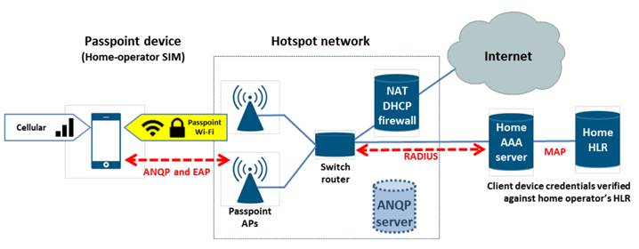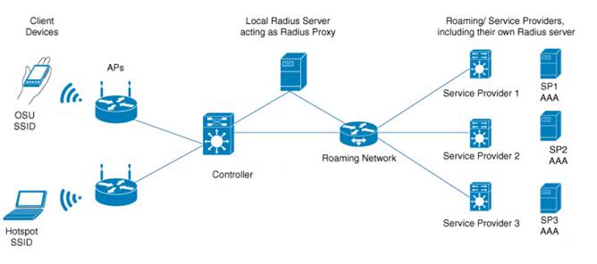 Sơ đồ dưới đây minh họa mô hình mạng Hotspot 2.0 điển hình: