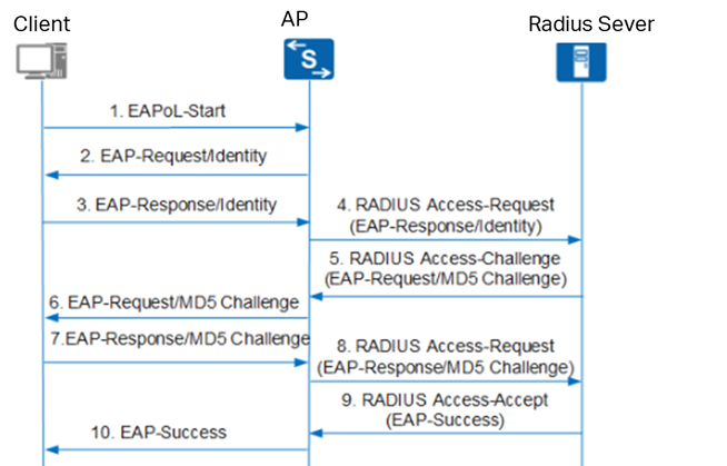 Bước 5 : Thiết bị sẽ chuyển tiếp MD5 Challenge nhận được từ RADIUS Server tới client.