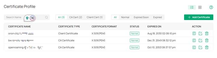 Bước 1: Truy cập Global View > Settings > Certificate Profile, sau đó Add Certificates (Thêm chứng chỉ).
