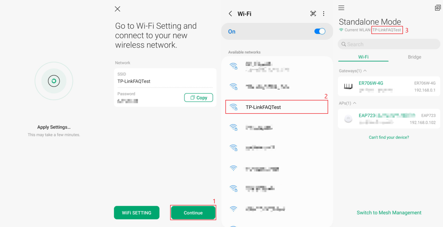 Bước 5: Áp dụng cấu hình và kết nối vào SSID mới để quản lý EAP bằng ứng dụng Omada.