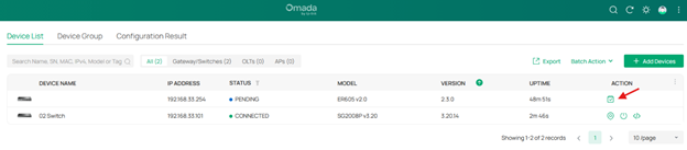Do gateway trong mạng đã được thay đổi, địa chỉ IP của switch và các thiết bị khác có thể sẽ thay đổi khi DHCP lease hết hạn. Ngoài ra, bạn có thể làm mới (refresh) địa chỉ IP thủ công bằng cách rút và cắm lại cáp Ethernet của các thiết bị này, sau đó sử dụng Omada Controller để quản lý chúng lại.