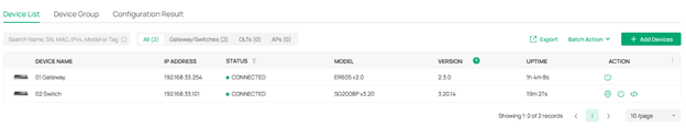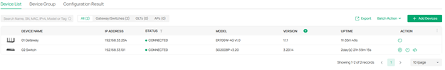Controller sẽ hiển thị gateway mới ở trạng thái đã kết nối và đang sử dụng cấu hình mạng hiện có.