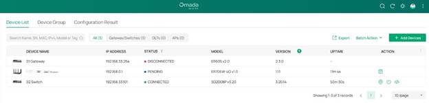 Bước 2: Kết nối Omada Gateway mới vào mạng hiện có. Controller sẽ hiển thị gateway trong danh sách thiết bị với trạng thái Pending.
