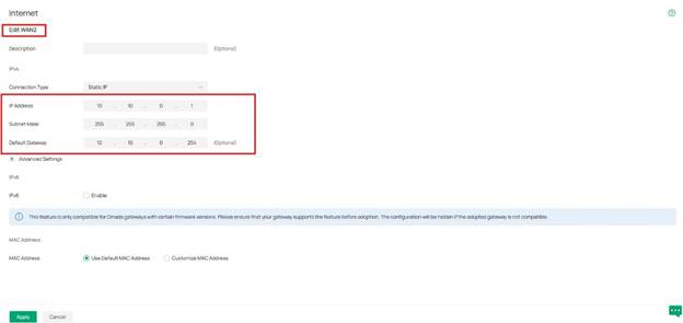 Sau khi hoàn tất các bước trên, Omada Gateway mới sẽ kế thừa địa chỉ IP khi nó được controller quản lý hoàn toàn.