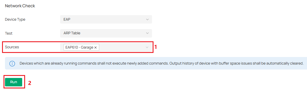 Bước 7. Nếu bạn sử dụng công cụ ARP Table, hãy chọn thiết bị nguồn (source device), sau đó nhấn Run để thực hiện.